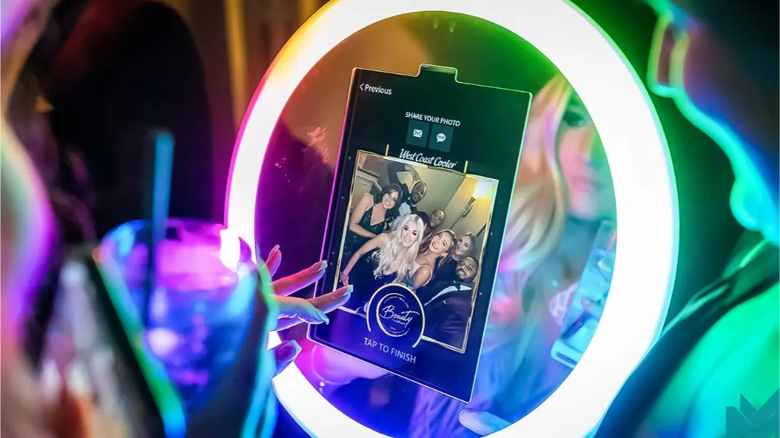 Bring the photo booth to your guests with our roaming photo booth. Perfect for mingling crowds, it captures candid moments anywhere on the floor and instantly shares them.