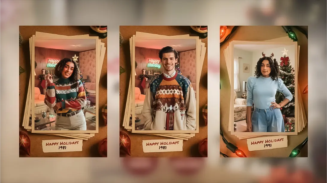 This one-of-a-kind photo booth experience transforms your modern holiday snapshots into authentic retro-style portraits, reminiscent of the 1970s, 1980s, and 1990s Christmas seasons.
