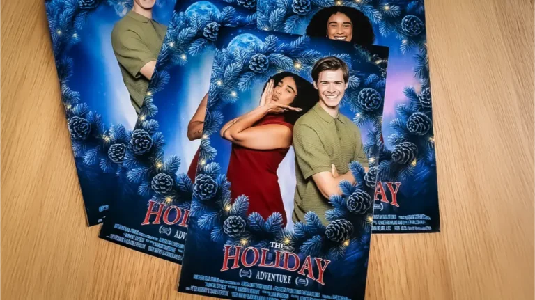 Holiday Movie Poster, Imagine your face perfectly placed on a professionally designed Christmas movie poster — complete with festive backdrops, cinematic lighting, and your name featured like a celebrity headline.
